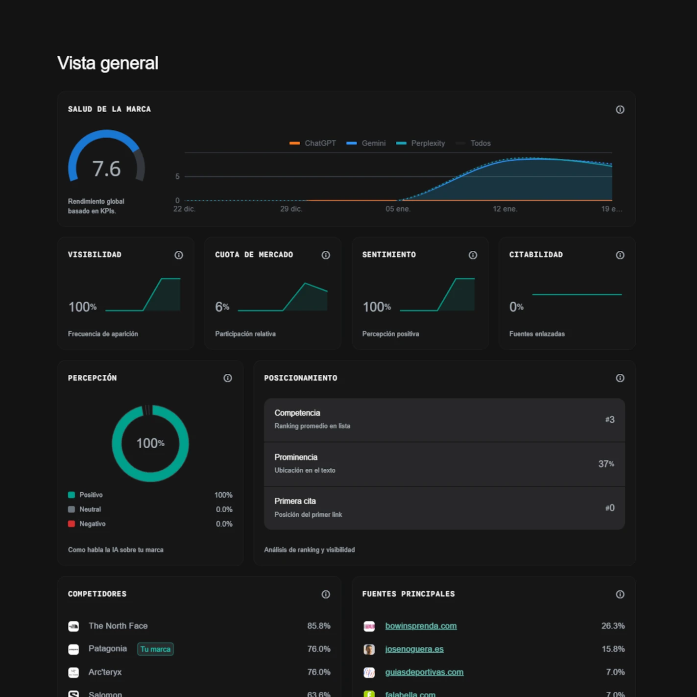 Más allá de Google. Gestiona la reputación en ChatGPT, Gemini, Claude y Perplexity desde un único panel de control unificado.